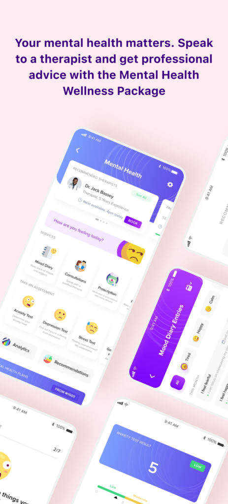 Mental Health Wellness Package: The mental health package has been designed to help users manage their mental health. It encompasses our previously released mental health assessments and mood diary, with the addition of consultations with a therapist.